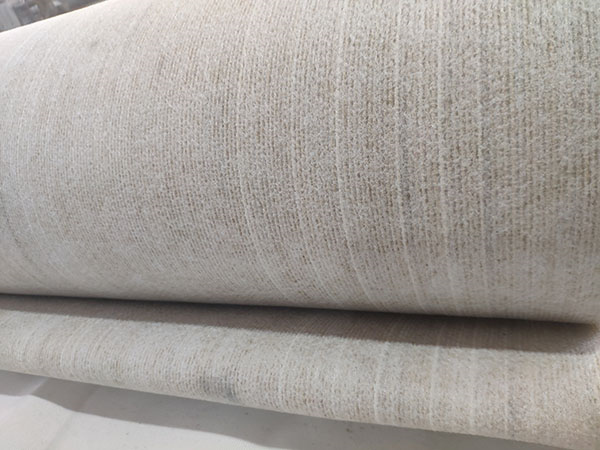 按照在造紙機(jī)上的部位可分為濕毯、上毯和干毯。濕毯在造紙機(jī)上帶水運(yùn)轉(zhuǎn),作用是壓榨紙坯使之脫水和紙面平滑。濕毯濾水性和彈性都
